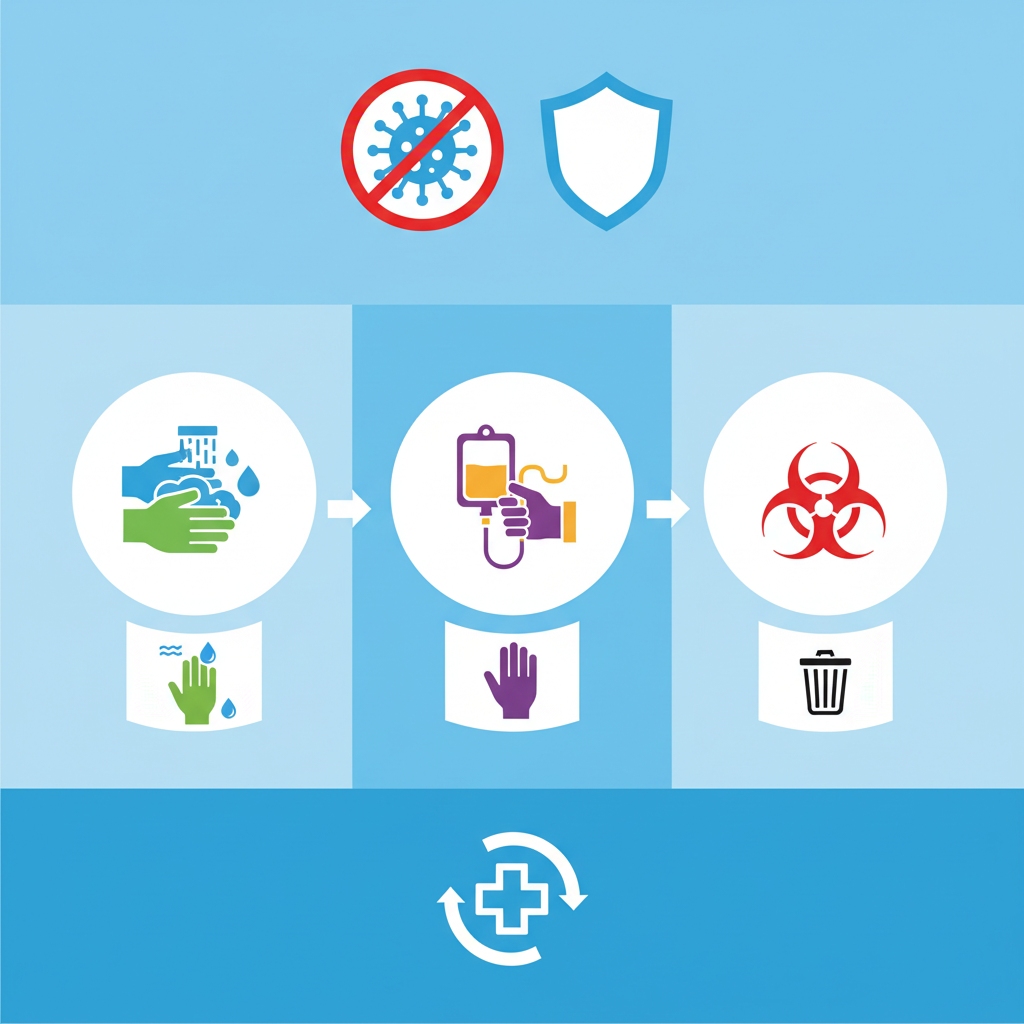 Gloves, masks if needed—PPE (Personal Protective Equipment) is your shield. Hand hygiene before and after? Non-negotiable for infection prevention infusion.