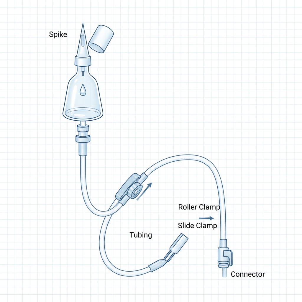 Ah, the drip chamber—your window into the action! This clear bubble lets you count drops for flow rate adjustment, typically aiming for 10-20 drops per minute depending on the set. It traps air bubbles (hello, air embolism prevention!) and often has a filter to snag particles. Squeeze it gently during priming to fill it halfway—voilà, smooth sailing.